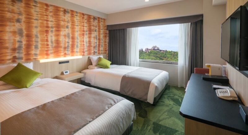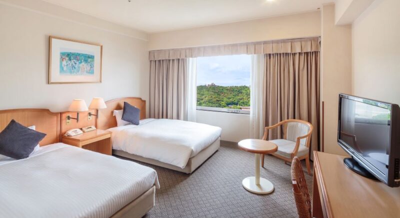 ベッド幅140cmでご用意。最大2名様までご利用可能です。無料Wi-Fi・加湿器付き空気清浄機(プラズマクラスター)も完備しております。キャッスルビューのお部屋もございます。