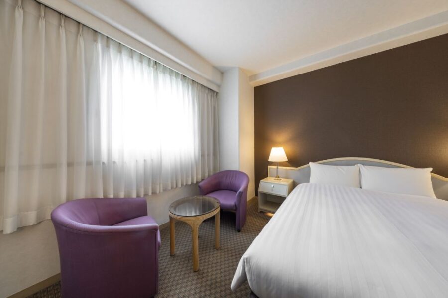 ベッド幅は、140cm幅になります。ゆとりのあるベッドのダブルルームは、お一人でもお二人でもゆっくりと快適にご利用いただけるサイズです。
