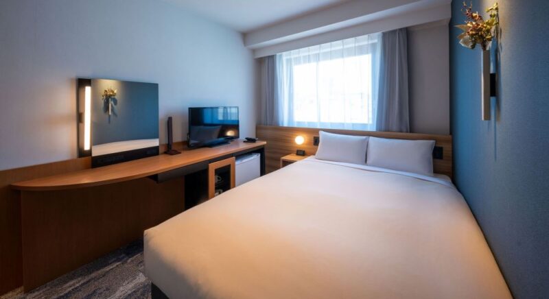 スタイリッシュなお部屋でおくつろぎください。全室禁煙。140cm幅のダブルベッドをご用意しております。