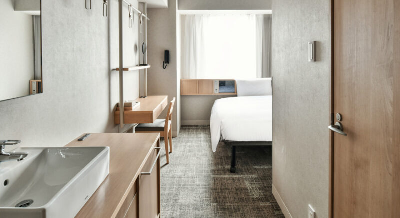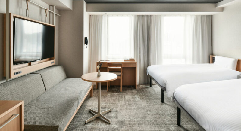 伊予鉄「松山市駅」から徒歩1分。和の要素を取り入れアートと木のぬくもりを感じる洗練されたお部屋でおくつろぎください。サウナ付大浴場とウェルカムドリンクサービス有!松山と愛媛をたびする朝ごはんも好評。全室禁煙。