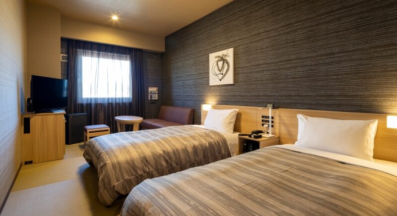 110cm幅のベッドを2台ご用意しております。居心地のよいお部屋でゆっくりおくつろぎください。禁煙室でのご用意となります。
