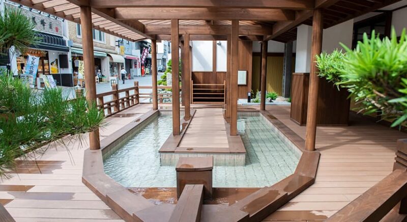 参道に面した足湯は無料でご利用いただけます。参拝のお疲れをお取りください。