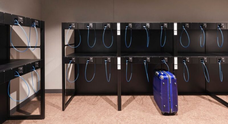チェックイン前・チェックアウト後は、セルフクロークにお客様ご自身でお荷物を保管出来ます。ワイヤーロックの施錠には交通系ICカードが必要となります。料金はかかりません。