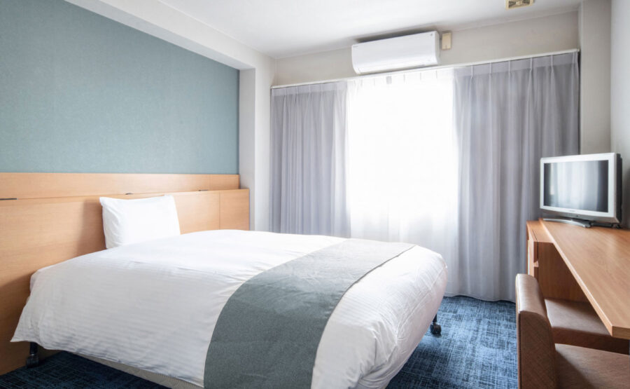 150cm幅のベッドをご用意。ゆったりとしたお部屋で2名様でもご利用可能です。