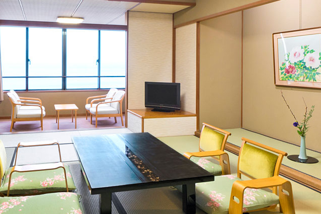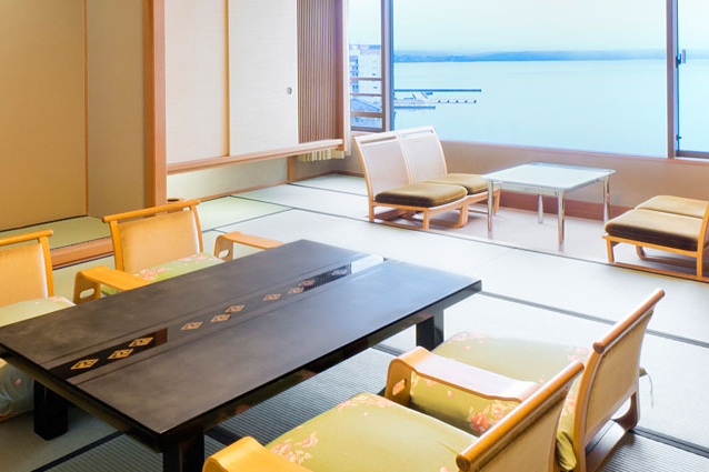 穏やかな内海と緑豊かな能登島をゆったりと眺め、落ちついた空間でおくつろぎください。