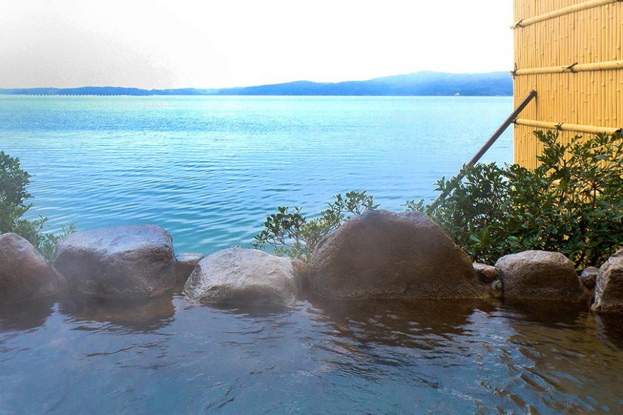 温泉は開湯1200年の歴史を誇る和倉の湯。あえの風の大浴場は、すぐれた泉質に加え、和倉温泉有数のスケールで開放感たっぷり。全面ガラス張りで、能登島や七尾湾を望む景観をお愉しみいただけます。
