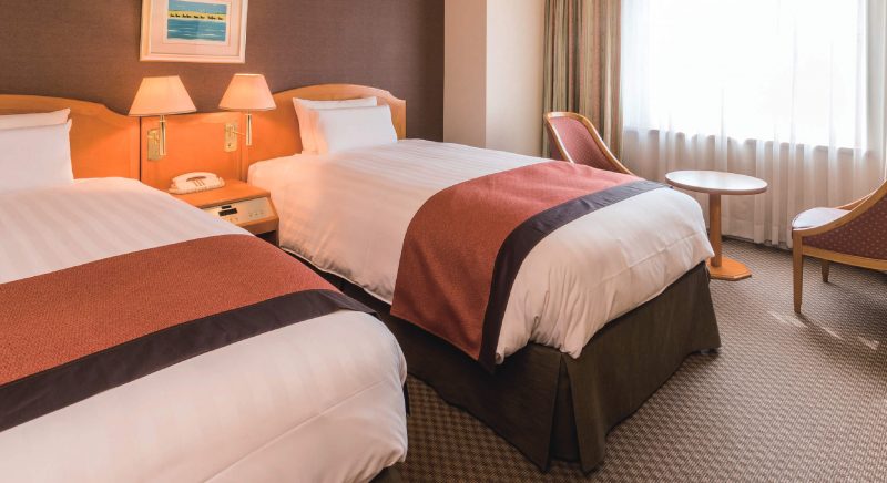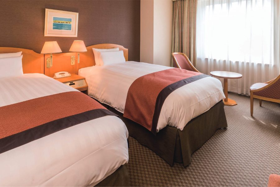 青森市中心部の夜景もお楽しみいただけます。ベビーベッドの設置が可能。広さ 部屋タイプ 定員 23.2~28.34m² ツイン 2名