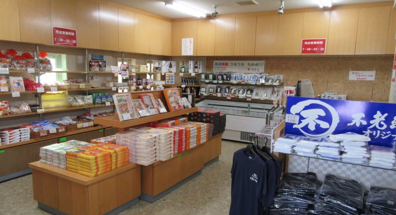 深浦町の特産品「つるつるわかめ」や、果物並の糖度を誇る「ふかうら雪人参じゅーす」など、深浦町をはじめ青森のお土産品を各種取り揃えています。