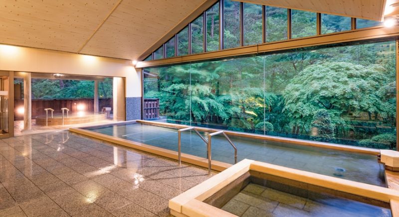 和の感性が しっとりと息づく なごみの空間。内風呂の湯船は清々しい香り漂う檜風呂。窓外の自然を眺めながら、お好きな時にお好きなだけ、湯の温もりをご堪能ください。