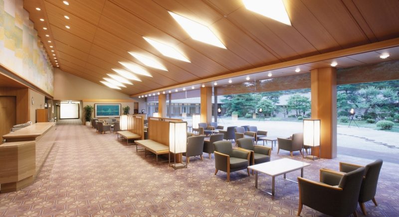 心を癒しなごませるとっておきの寛ぎスペース。日本情緒漂う中庭の眺めと、辺りを柔らく包み込む光がお客様をお出迎え。