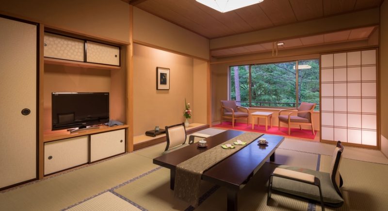 のんびり足を伸ばして寛げる和室の心地よさと、洋室の機能性の両方をご希望のお客様、ご家族やお仲間でご一緒に寛ぎたいというお客様にお勧めいたします。こちらでも檜の内風呂をお楽しみいただけます。