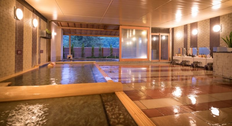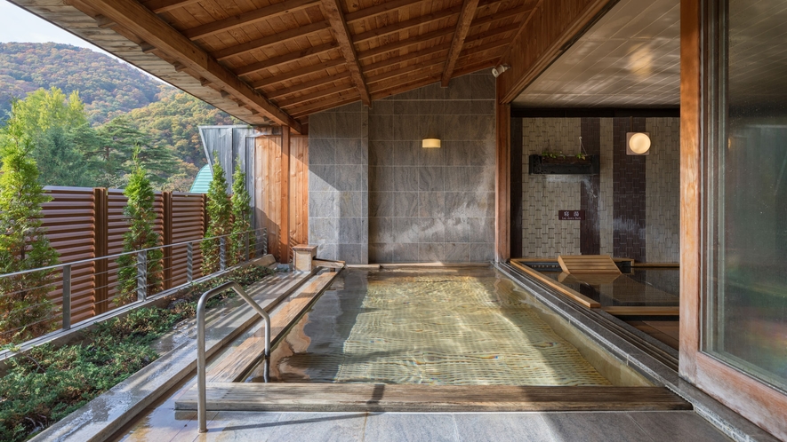 季節の移ろいを楽しめるひのき露天風呂。豊かな自然の移ろいを愛でることができ、見晴らしの良さが自慢です。
