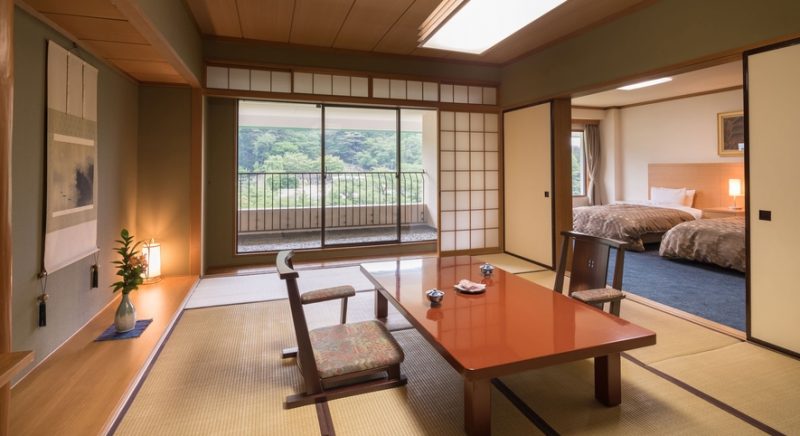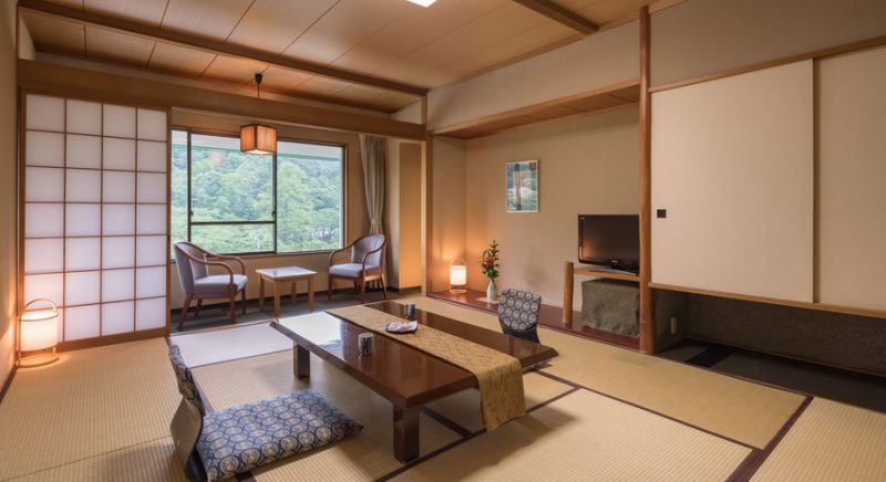 足を伸ばしてゆったり気分。温泉宿を満喫できる和室。