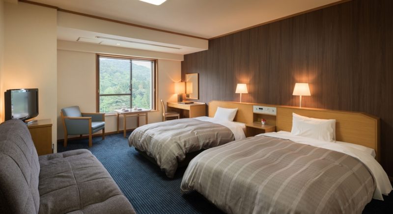 洋室ツインルーム。ベッドは120cmのセミダブルサイズ! ※エキストラベッド1台 3名利用可。