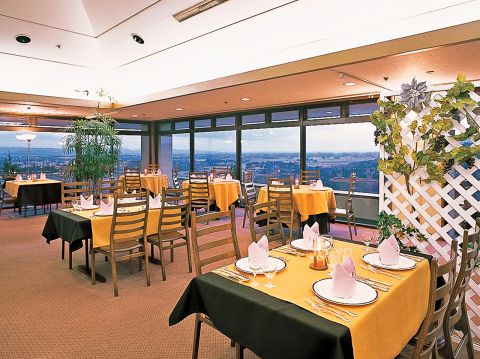 ホテルの最上階にある洋食レストラン。窓から花巻市内の景色が一望できます。