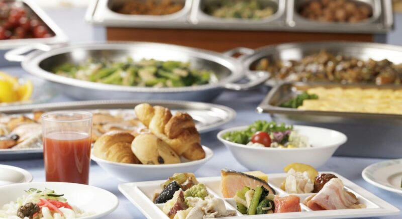 朝食は、大宴会場もしくはコンベンションホールでバイキングスタイルにてご用意しております。