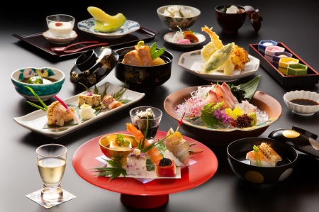 旬の地物が彩る加賀会席、伝統料理「鯛の唐蒸し」など、料理長こだわりのお料理を心ゆくまでお愉しみください。