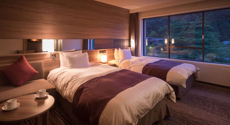 落ち着いたブラウンのトーンで統一されたツインルーム。シモンズ製120cm幅のセミダブルベッドを設置しております。カップル、ご夫婦のご旅行におすすめ。広さ 部屋タイプ 定員 36.9m² ツイン 2名