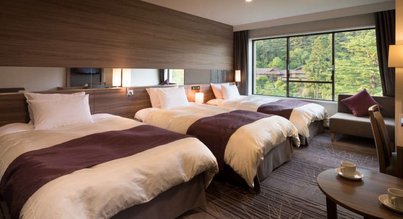 シモンズ製120cm幅のセミダブルベッドを3台設置したトリプルルーム。ご家族で洋室に泊まりたい方におすすめのお部屋です。広さ 部屋タイプ 定員 36.9m² トリプル 3名