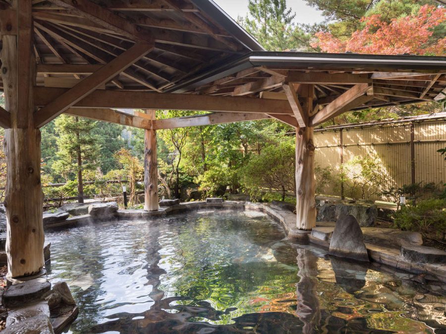 露天風呂からの景色は開放感に溢れ、季節の移ろいを全身で感じることができる紅葉の湯。 -