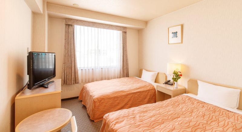 ベッド幅110cmのゆったりサイズのベッドが2台のツインルームです。