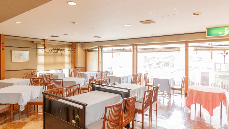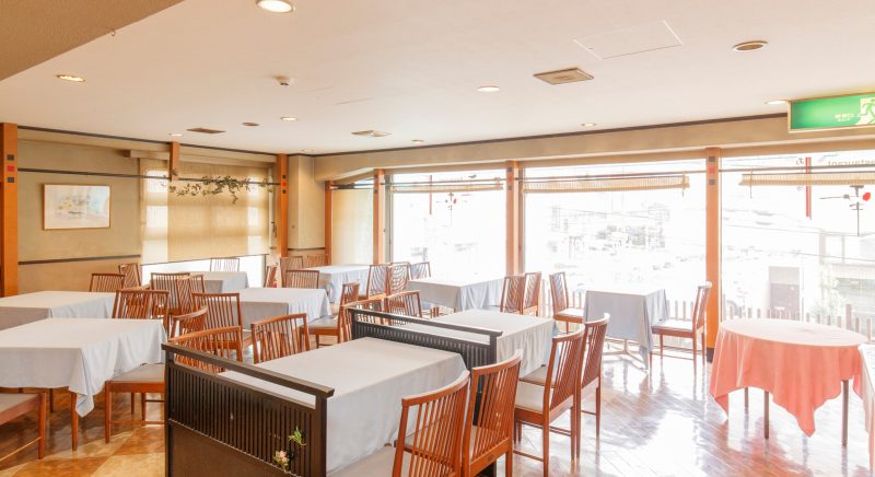 落ち着いたトーンで統一し、くつろいだ雰囲気でお食事や飲み物をお楽しみいただけるようゆったりと座席を配置しております。