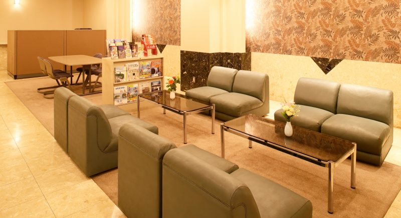 静かで、広々としたスペースにゆったりとソファーが配置されています。奥のスペースはビジネスコーナーもありちょっとしたデスクワークにもご利用いただけます。