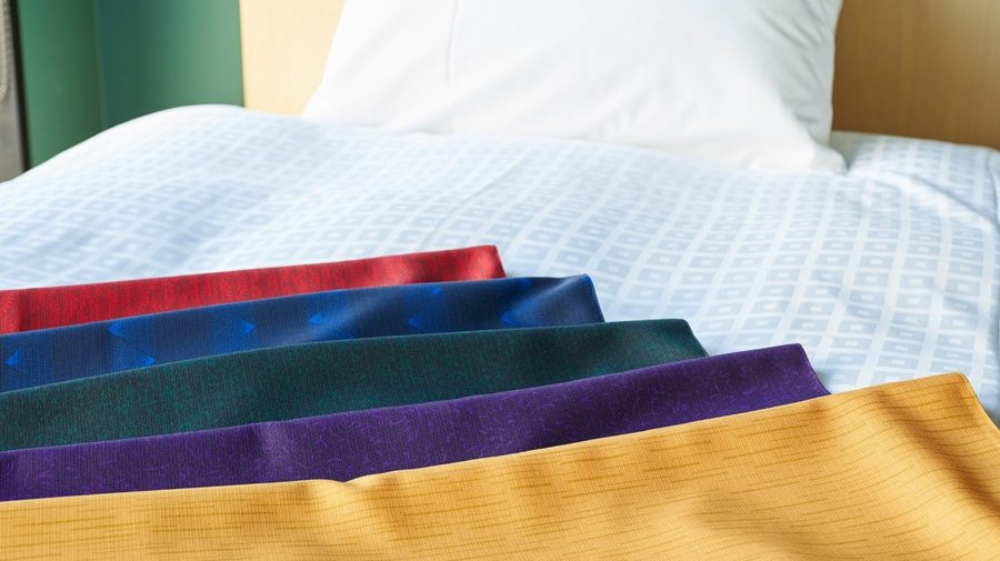 金沢の伝統工芸として名高い「加賀友禅」。その美しさを特徴づける“加賀五彩”とよばれる5色のカラーリングを、それぞれのお部屋に配し、視覚的な面白さを演出しています。