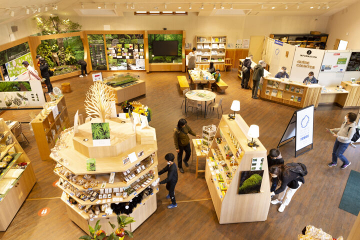奥入瀬渓流の動植物をテーマにしたミュージアムショップやカフェもある。