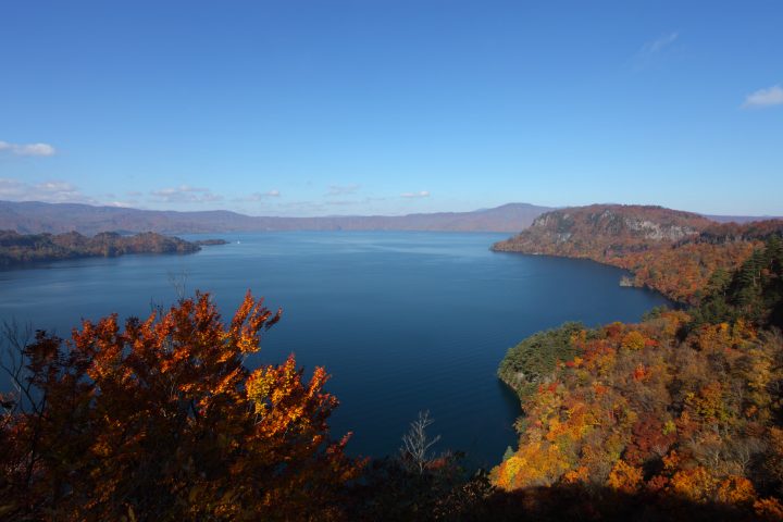 約20万年前に始まった火山活動により形成されたカルデラ湖で、最深部の深さは327mと日本3位の深さを誇ります。