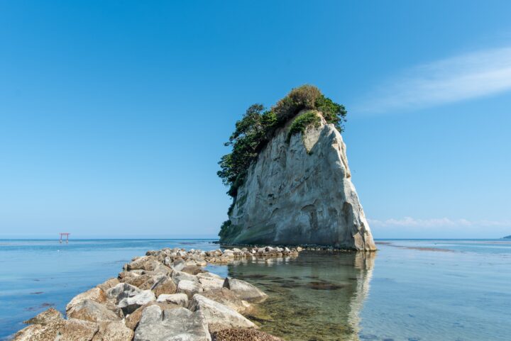 干潮時には約200mの踏石を渡って島の近くまで歩いていくことも可能。