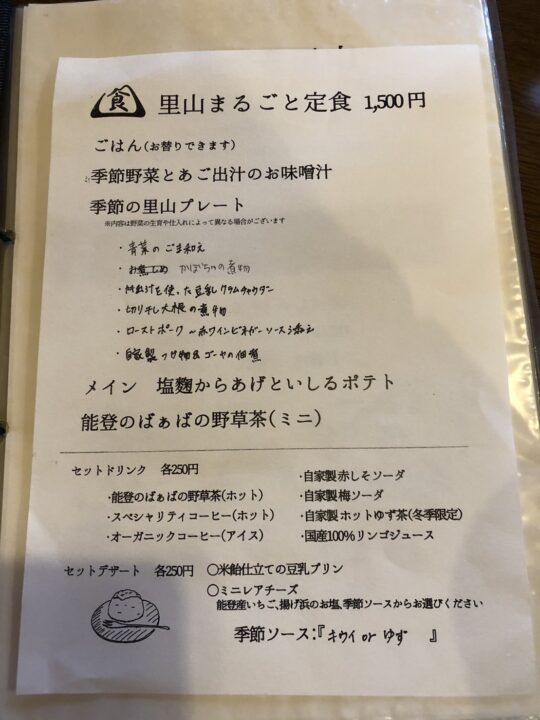 一番人気は里山まるごと定食!能登里山でとれる食材を使った季節のプレートのほか、