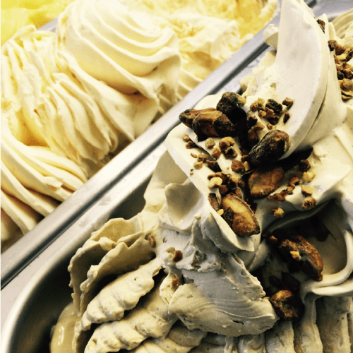 白を基調とした美術館のような建物でガラス越しに設けられたジェラート工房では製造工程が見学できる。