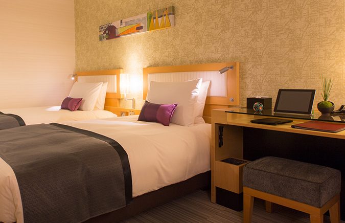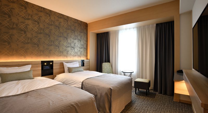 金沢の観光の中心・香林坊に位置し、兼六園や金沢21世紀美術館などにも徒歩圏内。恐竜ロボットがお出迎えし、加賀友禅を模したプロジェクションマッピングによるロビー演出、水引のデザインを取り入れたレストランなど、石川県の伝統を取り入れた空間を創り出したホテルです。
