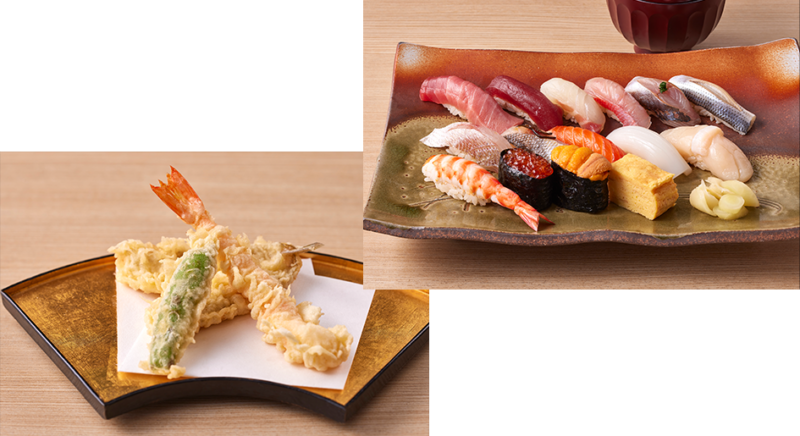 モダンな和の空間で、料理長こだわりの鮮魚を用いた自慢の握りや新食感の天ぷらをご堪能ください。カウンター席やテーブル席、個室もご用意。お一人様からご家族連れまで幅広いシーンでご利用いただけます。