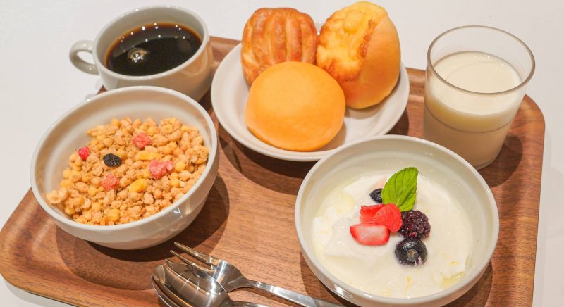 Loungeの朝食では、シリアルバーで栄養豊富なシリアルやグラノーラを通常5種類、数量限定で低糖質ブレッドなど”健康”を意識したご朝食を数多くご用意しております。