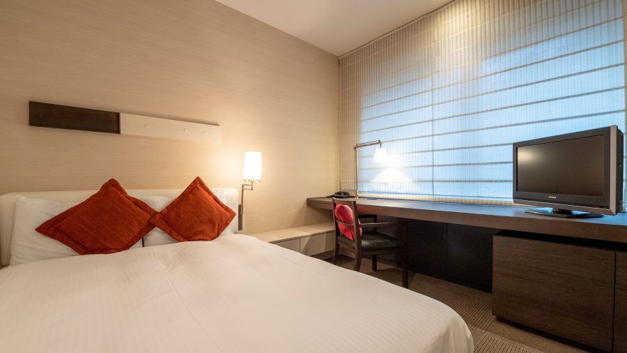 シンプルかつ高性能なお部屋♪140cmのベット幅でゆっくりご宿泊頂けます。広めのデスクでビジネスにも最適。