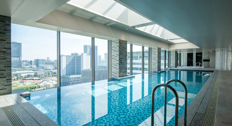 最上階の水面から海へとつながったような一体感を感じるインフィニティプールリゾート感漂うインフィニティ風の屋内プールはジャグジーも完備。【営業時間】15:00~22:00 【利用料金】2,200円(税込)※小学生以下のお客様はご利用頂けません。