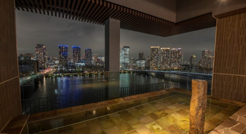 最上階14階に男女別の天然温泉を完備。眼下に広がる運河の向こうには、東京タワー、スカイツリー、レインボーブリッジをはじめ首都・東京の摩天楼が彩る眺望。