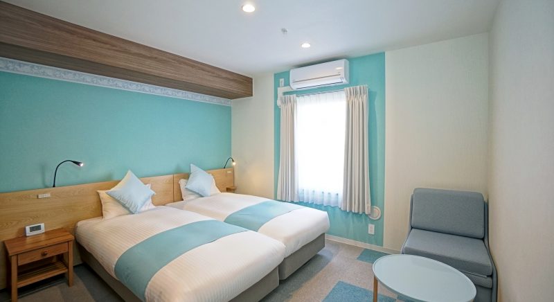 シングルベッド2台、ハリウッドツインとして利用可なのでお子様の添い寝利用も安心。洗い場付きのバスルーム(洗面台、トイレ別)