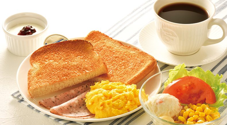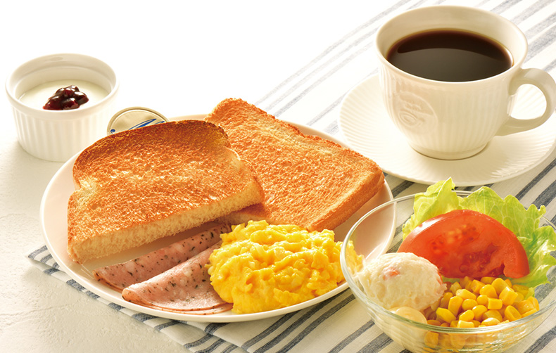 ご朝食は1Fのカフェ・ド・クリエにてお召し上がりいただけます。一日のはじまりを、おいしい一杯と共にお楽しみください。※モーニングメニューにはオレンジジュース(Sサイズ)が付きます。