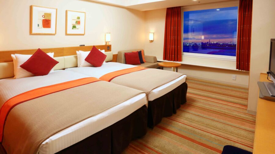 サンドベージュを基調とし、あたたかみのあるオレンジをアクセントとしたお部屋。 ※一部の客室からは東京ベイを望むことはできません。
