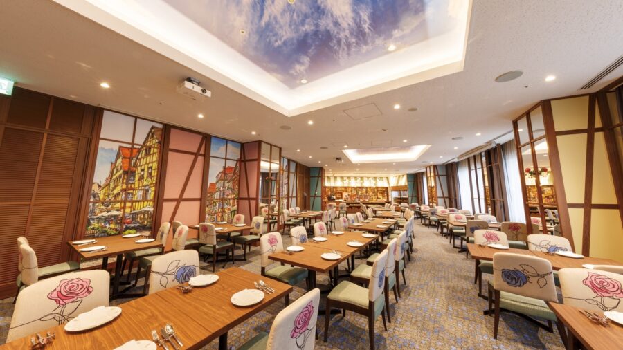 優雅で幻想的な雰囲気漂うお城のメインダイニングと、美しい街並みの活気ある朝のマルシェをイメージしたまるでおとぎ話の世界のような空間。【朝食営業時間】6:30~10:00