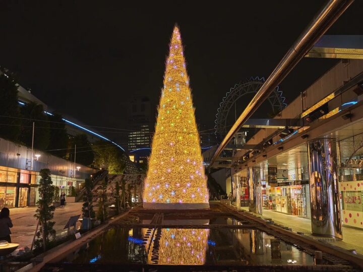 見どころといえば、高さ約20m・幅10mの大きなツリーが煌めく「台場メモリアルツリー」。
