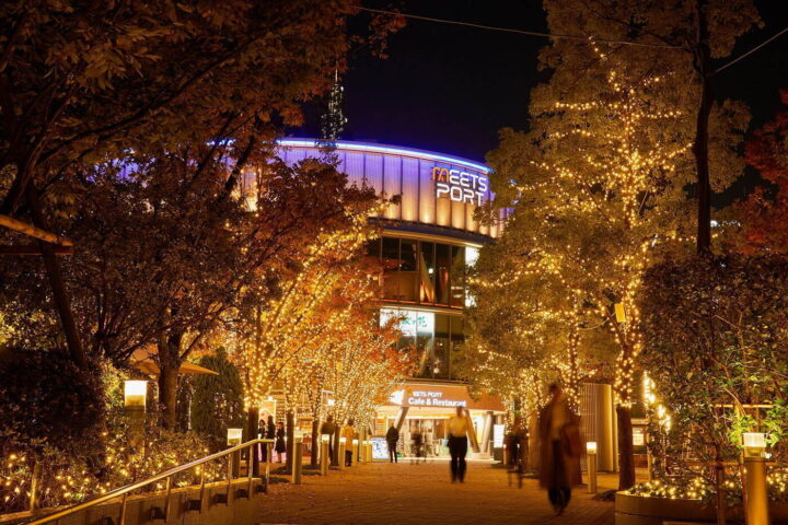 「デックス東京ビーチ」で行われるイルミネーションイベント「お台場イルミネーション “YAKEI”」では、お台場の美しい夜景をバックにイルミネーションが楽しめる。