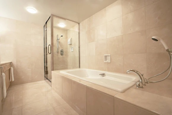 【リゾート感溢れる洗い場付き客室】パークウイングは、豪華客船が寄港する南国のシーサイドリゾートをイメージ。ご滞在のフロアによって異なる、新鮮な心地よさをお楽しみいただけます。さらにゆったり寛げる洗い場付きのバスルームや、お部屋での楽しみの幅を広げるマルチメディアハブを全室に採用し、快適なステイをサポートいたします。