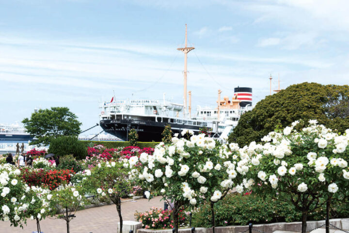 氷川丸の艦内は一見の価値あり。昭和5年(1930)に関東大震災のがれきを埋め立てて造られた公園である。「赤い靴はいてた女の子像」をはじめ、園内には像や記念碑も多く、海やベイブリッジを一望できるため、観光地として人気が高い。またバラの名所としても知られており、毎年春と秋には沈床花壇にたくさんのバラが咲き誇る。元町中華街駅からは徒歩3分。