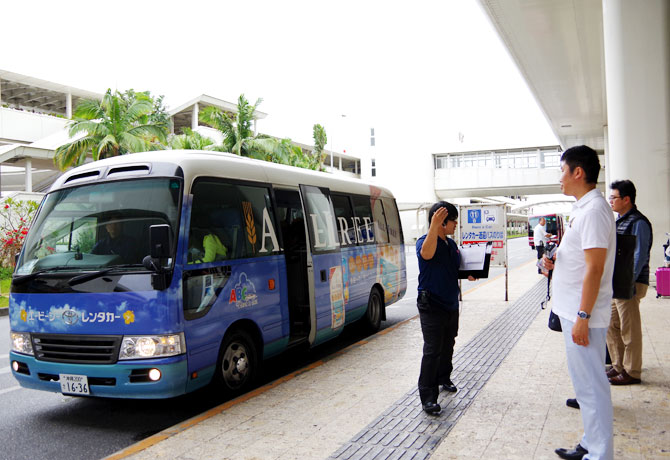 ☑送迎車に乗ってレンタカー会社まで移動します。空港から3~10分以内の会社がほとんどです。