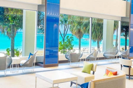 ビーチを眺めながらのんびりと寛げる明るく開放的なロビー!