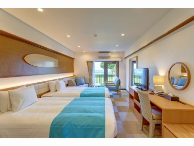 底地(すくじ)ビーチまで歩いて10秒!!プライベートビーチ気分で海を楽しめるホテルです。お部屋はナチュラルな素材と南国らしい鮮やかな色彩でコーディネートされていて、程よい広さと使い勝手に気を配ったつくりになっているんだ!大きくつくられた窓いっぱいに広がる海を見ながらくつろいだり、バルコニーの椅子に座りながら沈み行く夕日を楽しめるのも素敵♪
